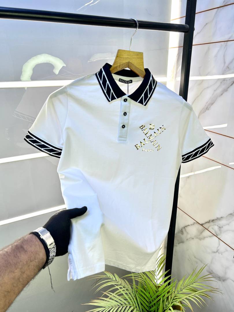 Balmai n Paris Logo Imported White Collar Neck Premium T-shirt F2831-WH